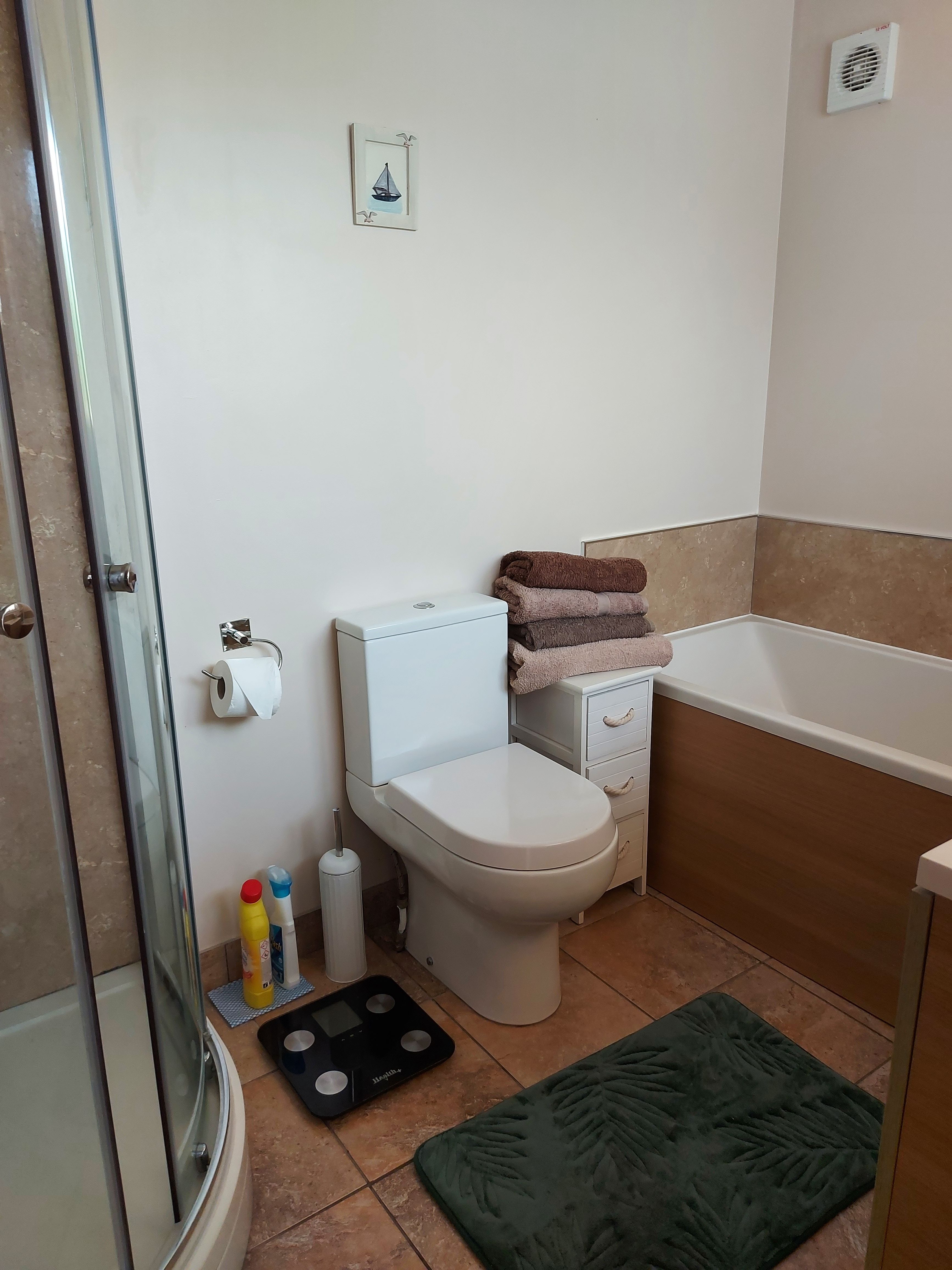 Bathroom: With bath, shower cubicle and toilet.