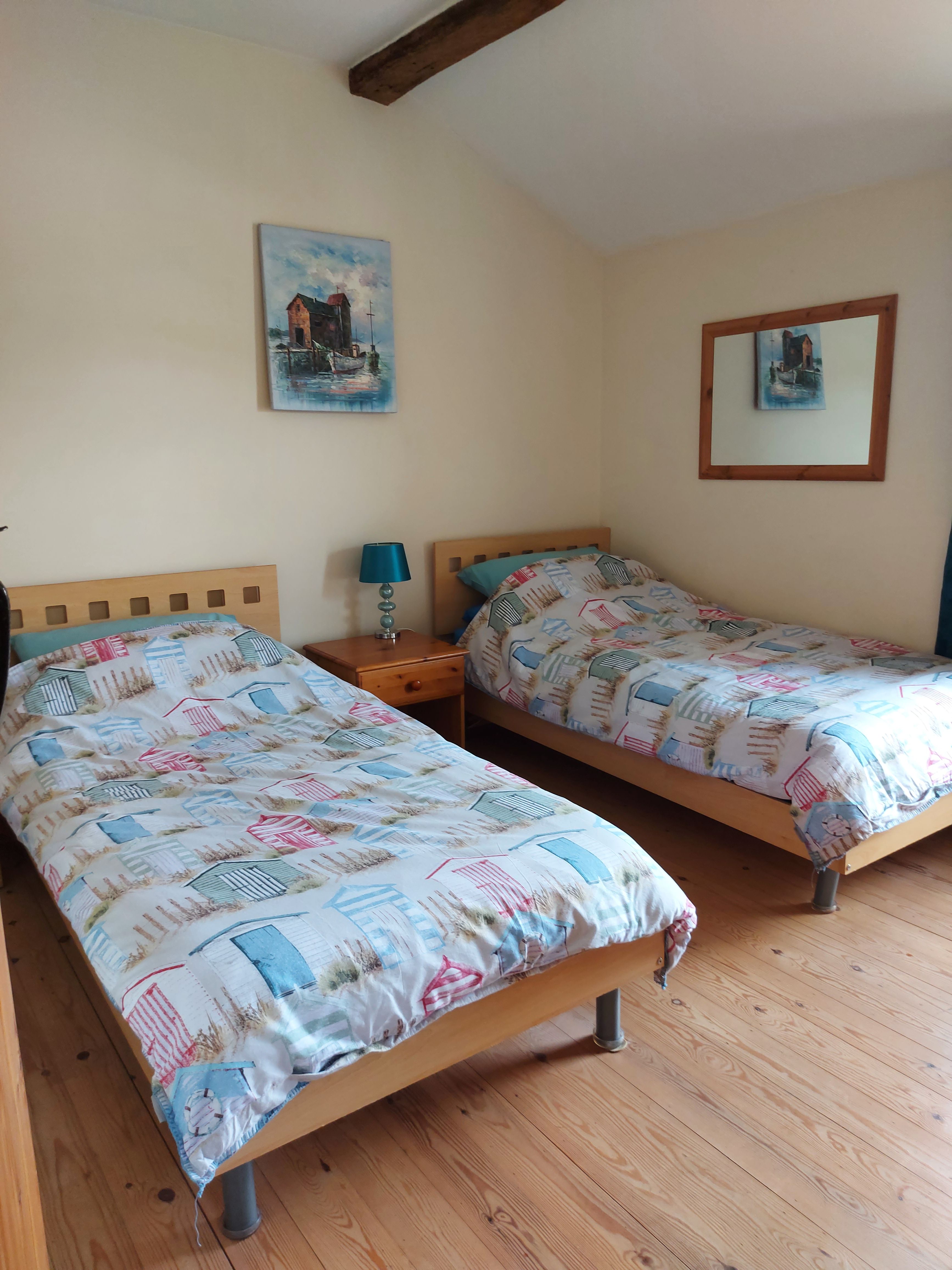 Bedroom 2: With twin beds and wooden floor. Cot on request